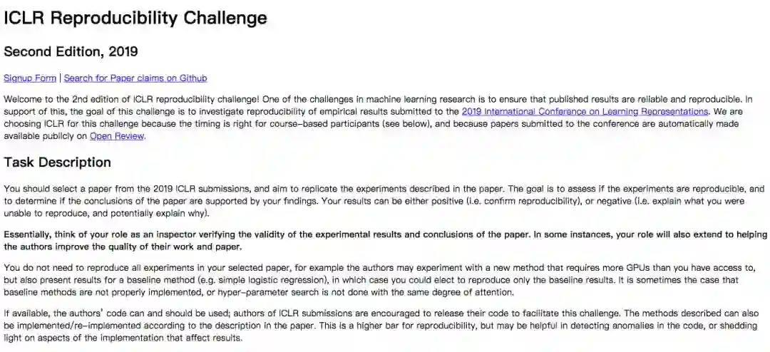 ICLR在去年举办了一个“研究复现挑战赛”,今天刚刚公布了第二届的消息。在这个复现挑战赛中,参赛者从2019年ICLR提交的论文中任意选择一篇,然后尝试复现论文中描述的实验。目标是评估实验是否可重复,并确定你的发现是否支持该论文的结论。
