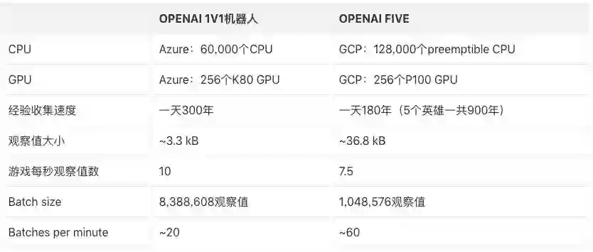 OpenAI Five每天玩的游戏量相当于人类玩家180年的积累,和围棋AI一样,它从自学中提取经验。训练设备是256个GPU和128,000个CPU,使用的强化学习算法是近端策略优化(PPO)。因为不同英雄间技能、出装各异,这5个英雄使用的是5个独立的LSTM,无人类数据,由英雄从自己的数据中学习可识别策略。