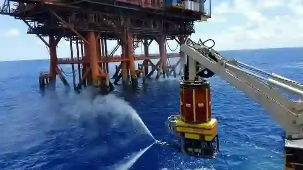 国内首次使用ROV携带高压水枪进行导管架大面积海生物清理工作