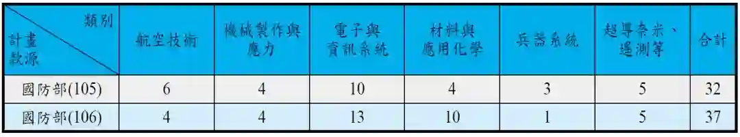 数据源:“国防”科技发展推行会学术配合发展会报第13次委员会会议资料