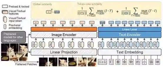 许多研究开始热衷于挖掘 Transformer 在处理多模态任务(如视频 - 文本、图像 - 文本和音频 - 文本)的潜力。CLIP 是其中影响力较大的一个工作, 其将自然语言作为监督信号,来学习更有效的图像表示。CLIP 使用大量文本图像对来联合训练文本编码器和图像编码器。CLIP 的文本编码器是一个标准的 Transformer,具有 mask 的自注意力层;对于图像编码器,CLIP 考虑了两种类型的架构:ResNet 和视觉 Transformer。CLIP 在一个新采集的数据集上进行训练,该数据集包含从互联网上收集的 4 亿对图像 - 文本对。CLIP 展示了惊人的零样本分类性能,在 ImageNet-1K 数据集上实现了 76.2% top-1 精度,而无需使用任何 ImageNet 训练标签。华为诺亚的悟空(英文名:FILIP)模型使用双塔架构构建图文表征,取得了更好的效果,如图 5 所示。总之,基于 transformer 的多模态模型在统一各种模态的数据和任务方面显示出了其架构优势,这表明了 transformer 具备构建一个能够处理大量应用的通用智能代理的潜力。