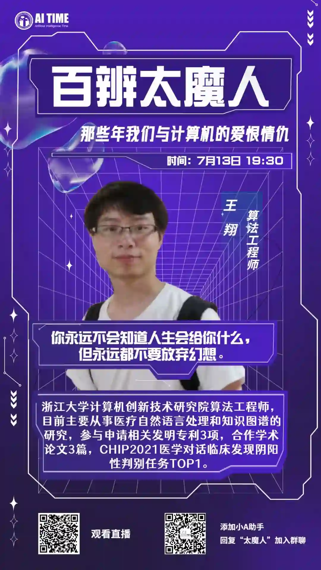 7月13日19:30,首期百辨太魔人,我们一起聊一聊“那些年与计算机的爱恨情仇”。
