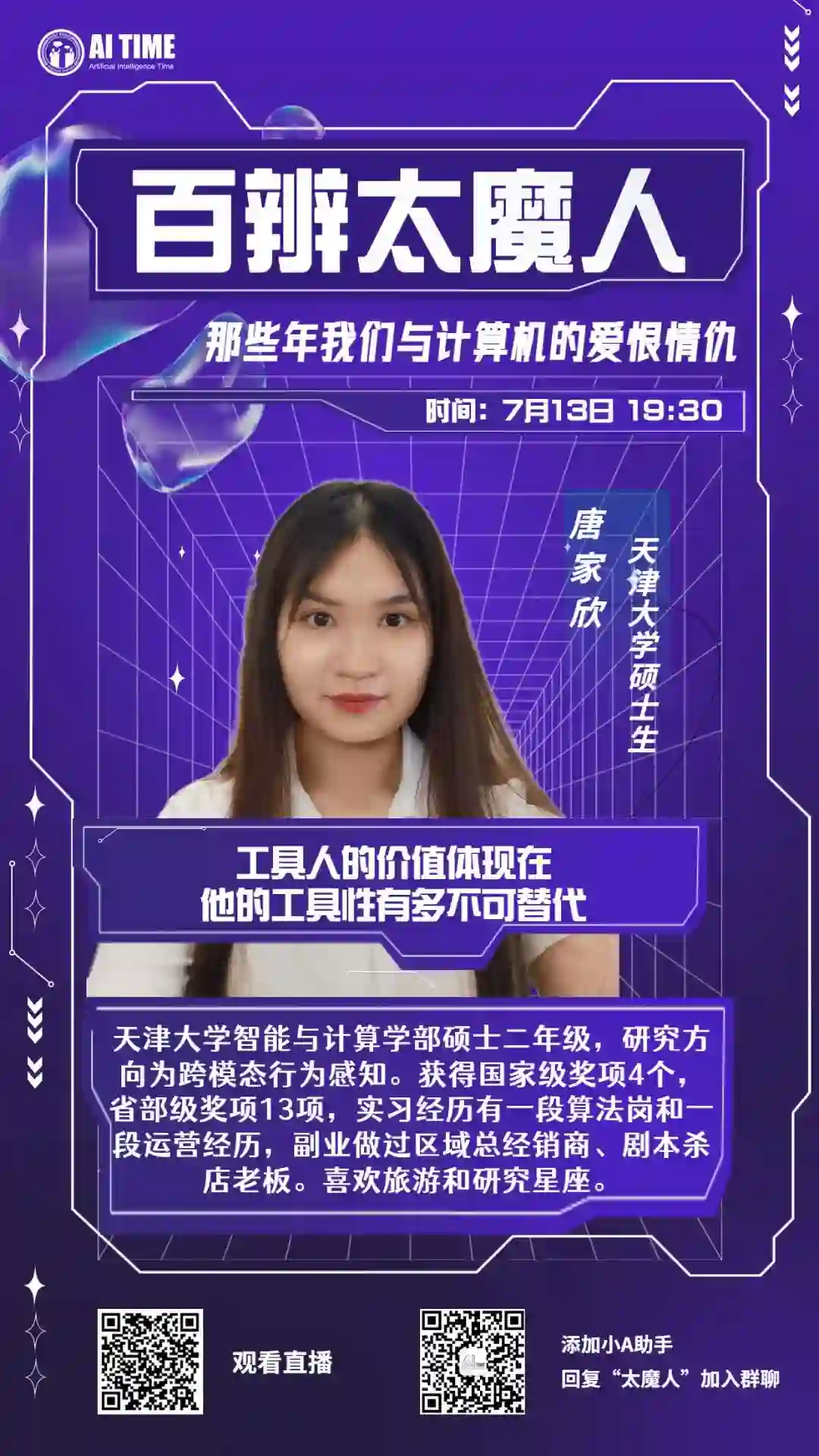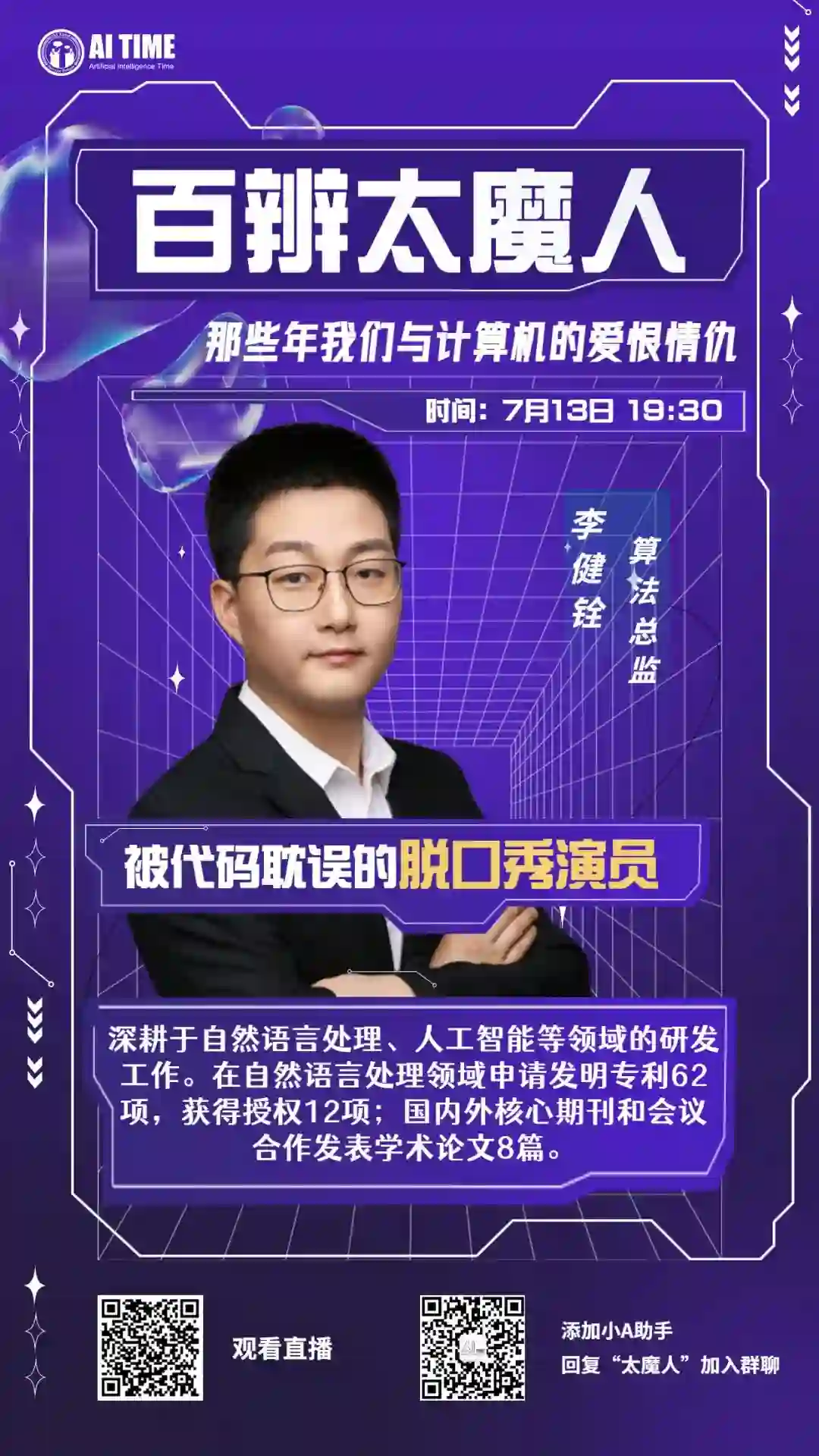 了7月13日19:30将举办的首期百辨太魔人讲座,欢迎扫码预约直播。