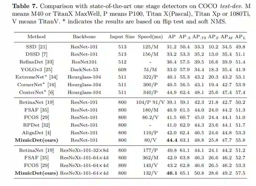 这是一种通过直接模仿两阶段特征来训练一阶段检测器的新颖高效框架,旨在缩小一阶段和两阶段检测器之间的精度差距。在COCO上,基于ResNeXt-101可达46.1 mAP!