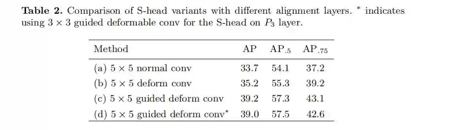 S-head的架构如图2所示。微网络由三个1×1对流和64、128个中间通道组成。然后使用一个5×5可变形的256通道conv和两个sibling 1×1 convs提取1024-d特征用于分类和回归分支。然后用两个单独的1×1 convs来生成预测。为了进一步减少计算量,我们在最高分辨率P3中将5×5变形conv替换为3×3变形conv。为了语义一致性,保持T-head的标签分配策略和丢失函数不变。