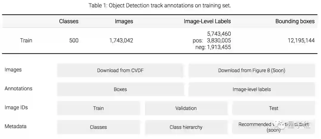 训练集包含500类170万张图片,带有1220万处bounding-box标注;