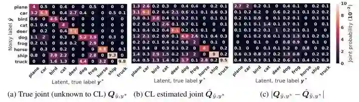 看到这里,也许你会问为什么要估计这个联合分布呢?其实这主要是为了下一步方便我们去clean噪声数据。此外,这个联合分布其实能充分反映真实世界中噪声 ( 错误 ) 标签和真实标签的分布,随着数据规模的扩大,这种估计方法与真实分布越接近 ( 原论文中有着严谨的证明,由于公式推导繁杂这里不再赘述,有兴趣的同学可以详细阅读原文~,后文的图7也有相关实验进行证明 )。
