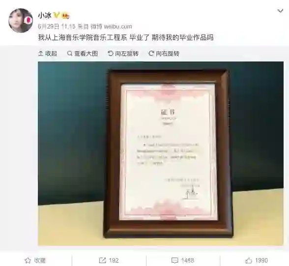 事实上,微软小冰在 6 月底刚从上海音乐学院音乐工程专业毕业,并荣获 2020 届「荣誉毕业生」称号。