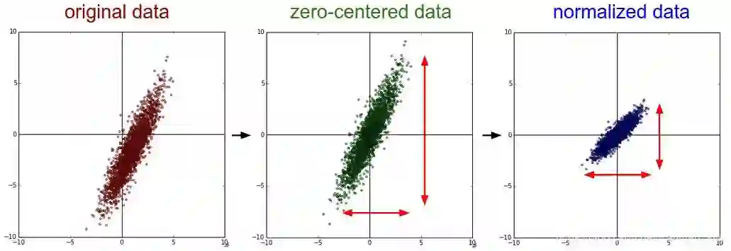 对于我们的输入矩阵X(形状为[N x D]),通常有三种常见的数据预处理形式: