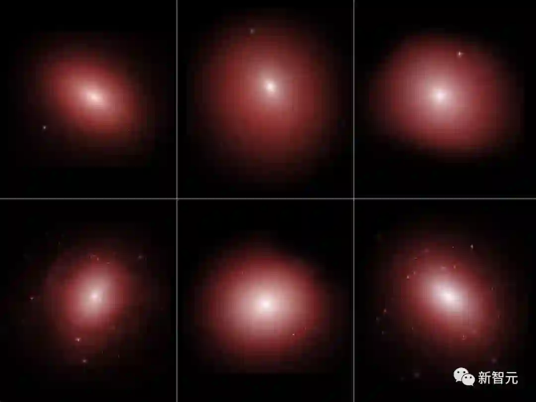 在距离地球40亿到80亿光年的距离上,椭圆星系的光波被「红移」,呈现红色。
