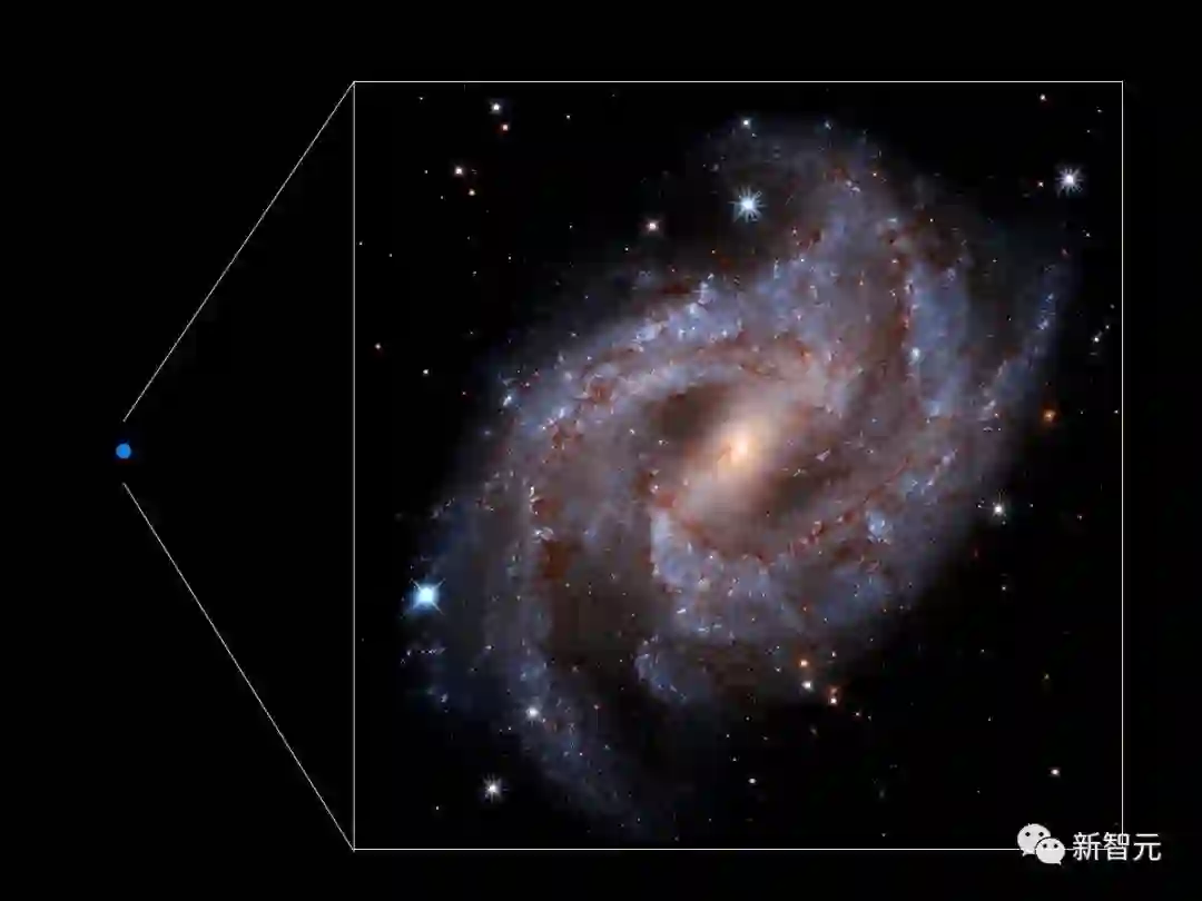 「在这张地图中,我们只是最底部的一个斑点,只是一个像素点。这个‘我们’指的是银河系,拥有数十亿颗恒星和行星的银河系。」