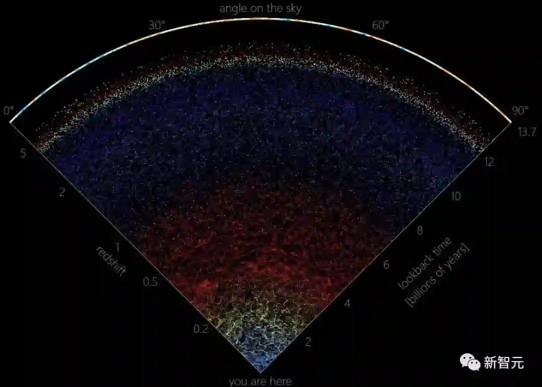 完整的宇宙地图实际上是一个球体。此次可视化的,只是宇宙的「一片」。
