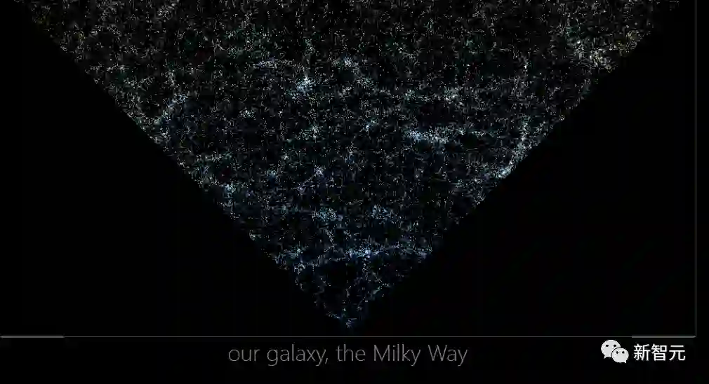 在地图上,每个点都是一个星系,每个星系包含数十亿颗恒星和行星。而我们所在的银河系只是这些点之一,位于地图的最底部。