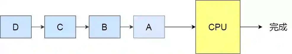 顾名思义,先来后到,每次从就绪队列选择最先进入队列的进程,然后一直运行,直到进程退出或被阻塞,才会继续从队列中选择第一个进程接着运行。