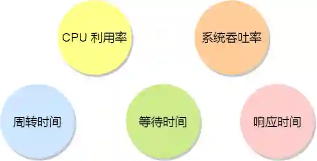 原则四:处于就绪队列的进程,也不能等太久,当然希望这个等待的时间越短越好,这样可以使得进程更快的在 CPU 中执行。所以,就绪队列中进程的等待时间也是调度程序所需要考虑的原则。