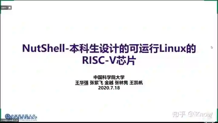CRVA 联盟将于 7 月 18 日召开 RISC-V 年中技术研讨会,「一生一芯」团队决定让王华强提交一份设计报告,正式向社区介绍 COOSCA 核的设计。提交前,大家觉得 COOSCA 是一个内部代号,现在要公开亮相了,应该有个正式一点的名字。同学们讨论后,决定改名为「果壳(NutShell)」,和国科大的「国科」同音。可以看得出来,他们对国科大确实有些深厚的情感。