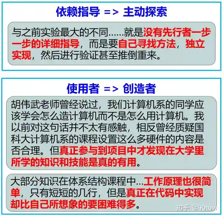 在一款功能完整的芯片,有一些关键模块的原理是课堂上没有详细介绍的,学生要正确地实现这些模块,需要一个探索的过程。这意味着学生不能像课程作业那样按部就班地完成,而是会经历设计方案的调整,甚至是整个方案的推倒重来。这容易导致学生感到焦虑或沮丧,因此教师需要对学生的心态进行正确的引导,告诉他们不确定性是探索过程中的客观规律,然后引导学生去总结探索失败的经验,去深刻地分析当前方案不可行的原因,从而加深对问题的理解,让学生正确认识到探索失败的意义。