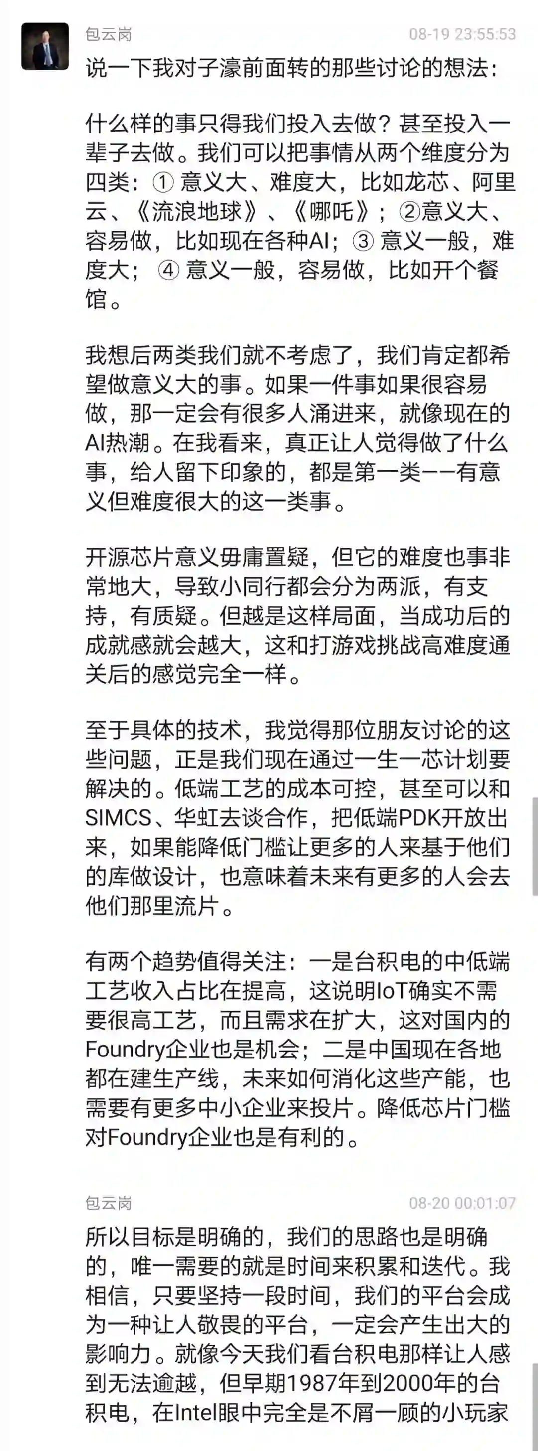 由此可见,降低芯片设计门槛,让学生能设计自己的芯片并流片,可大幅提高人才培养效率。这和我此前的构想和目标完全一致。我们不能再耽误了,要加速人才培养计划。