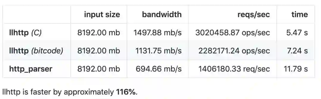 默认的 HTTP 解析器切换为 llhttp ,性能提升恐怖如斯:
