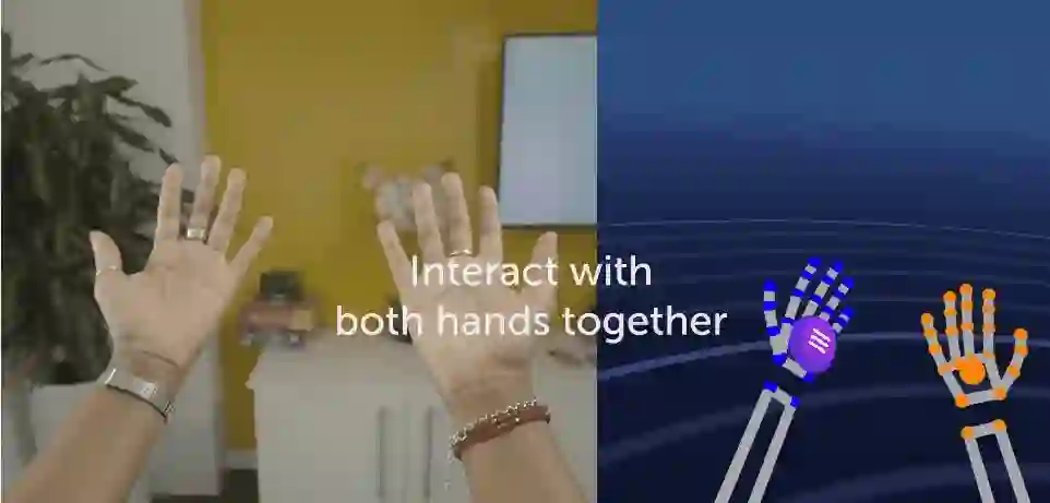 后者嘛,还记得一开始在空气中打字的GIF么,那就是基于Ultraleap推出的第五代手部追踪平台Gemini实现的。