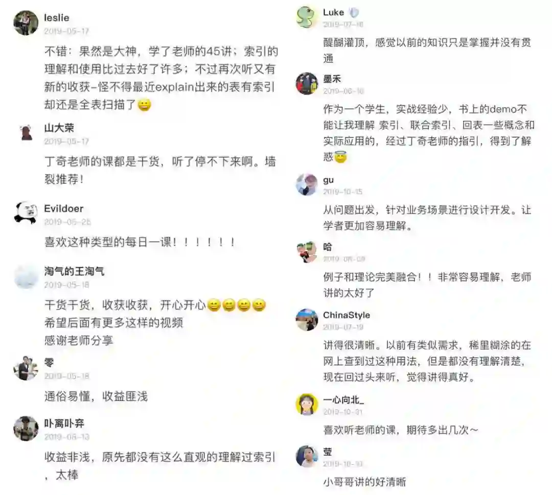 比如,数据库大佬、腾讯云数据库负责人丁奇老师,就用 10 分钟讲透“为什么 SQL 语句使用了索引,但却还是慢查询?”这个问题,他以查询大概 13 亿行数据的 MySQL 表 t_people 为例,用图例和语言为大家讲透了慢查询的原因,以及性能优化的方法,让人直呼“醍醐灌顶”。