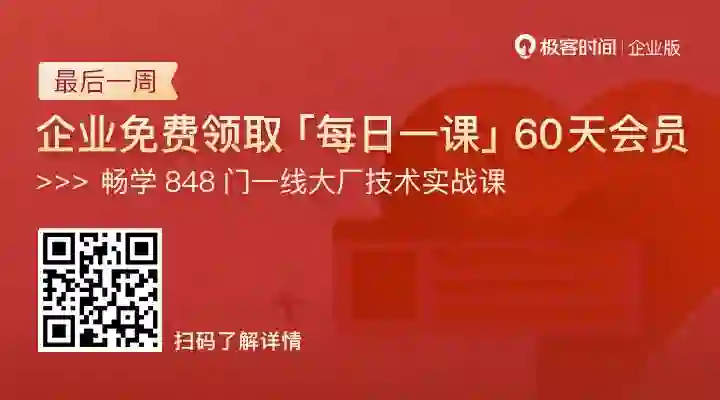 目前已经有 2500+ 企业为技术团队免费领取了课程,只要你所在的团队有学习意愿,都可以组团免费领取「每日一课」60 天会员,团队中的每个成员都可以学习。目前课程内容覆盖了数据库、iOS、Linux、命令行、微服务、算法、JVM、NoSQL、Spring 等众多领域和场景,覆盖软件开发全生命周期中的大部分问题,帮助你攻克难题,快速成长。扫码立即领取👇