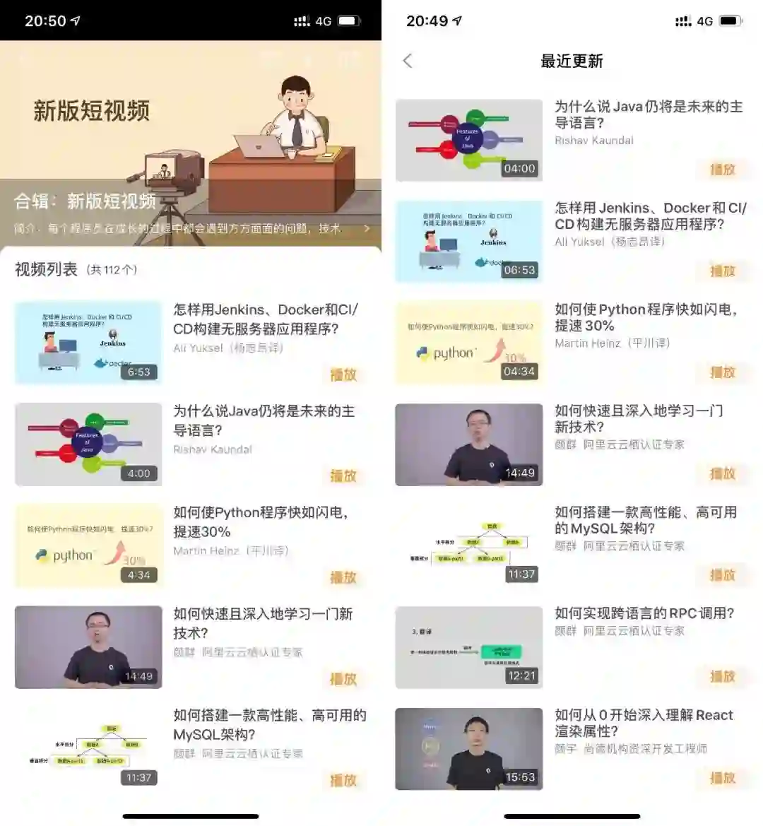 「每日一课」版块下,除了技术短视频之外,还有很多行业精品大会实录视频课,包括:QCon 全球软件开发大会、ArchSummit 全球架构师峰会、GMTC 全球大前端会议、BCCon 全球区块链生态技术大会、GTLC 全球技术领导力峰会、AlCon 全球人工智能与机器学习技术大会和 CNUTCon 全球运维技术大会等。