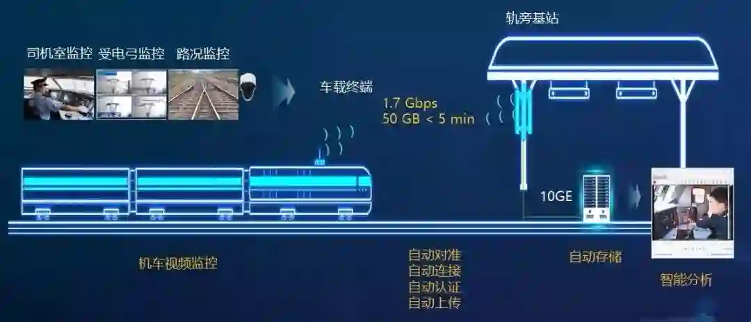 5G 技术被首次成功引入到铁路行业,构建了“车-地”超宽带无线接入通道,解决了铁路机车车载数据转储难题。