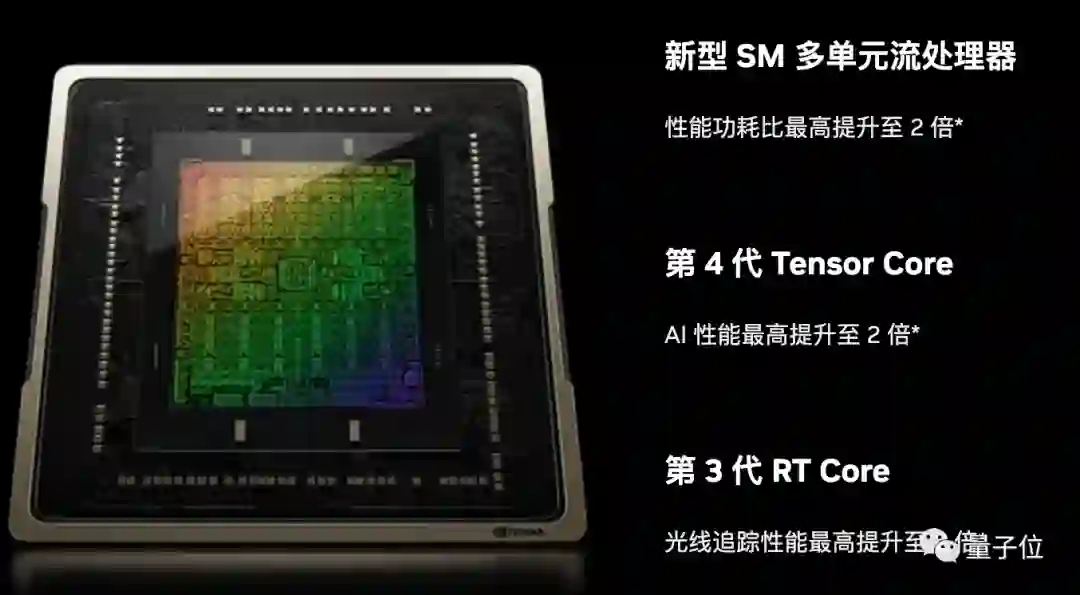接下来,英伟达把新架构下的SM多单元流处理器、负责AI计算的Tensor Core与负责光追的RT Core都升级至新一代。