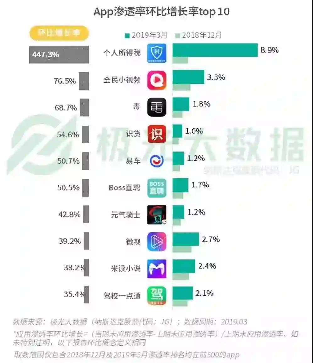 “毒APP”的发展势头迅猛,报道显示,2018年中旬“毒APP”每月GMV已经接近2亿元,2019年全年GMV可达60-70亿元,2019年3月毒的月活超过140万。据极光大数据统计,2019年3月,“毒APP”的渗透率环比增长率为68.7%,位列第三。