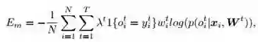 对于每个子任务,使用的交叉熵如下(W是网络参数,xi是输入,oi是输出,wi是图像权重):