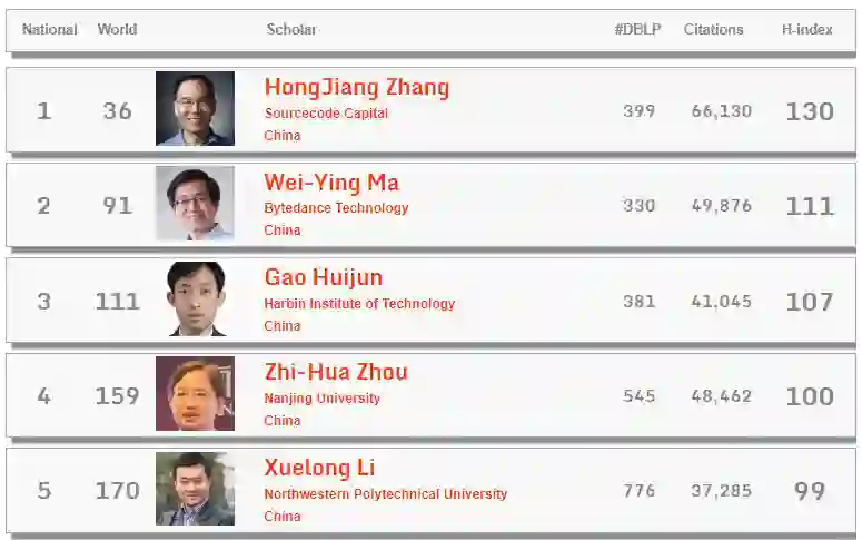在Guide2Research发布的2020全球顶尖计算机科学家排名中,