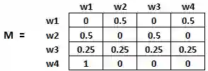 最后,这个矩阵中的值将以迭代的方式更新,以获得网页排名。