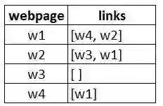 假设我们有4个网页——w1,w2,w3,w4。这些页面包含指向彼此的链接。有些页面可能没有链接,这些页面被称为悬空页面。