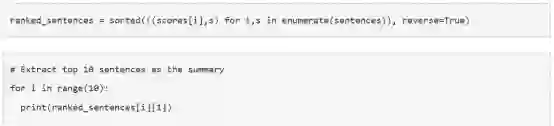 最后,根据排名提取前N个句子,就可以用于生成摘要了。