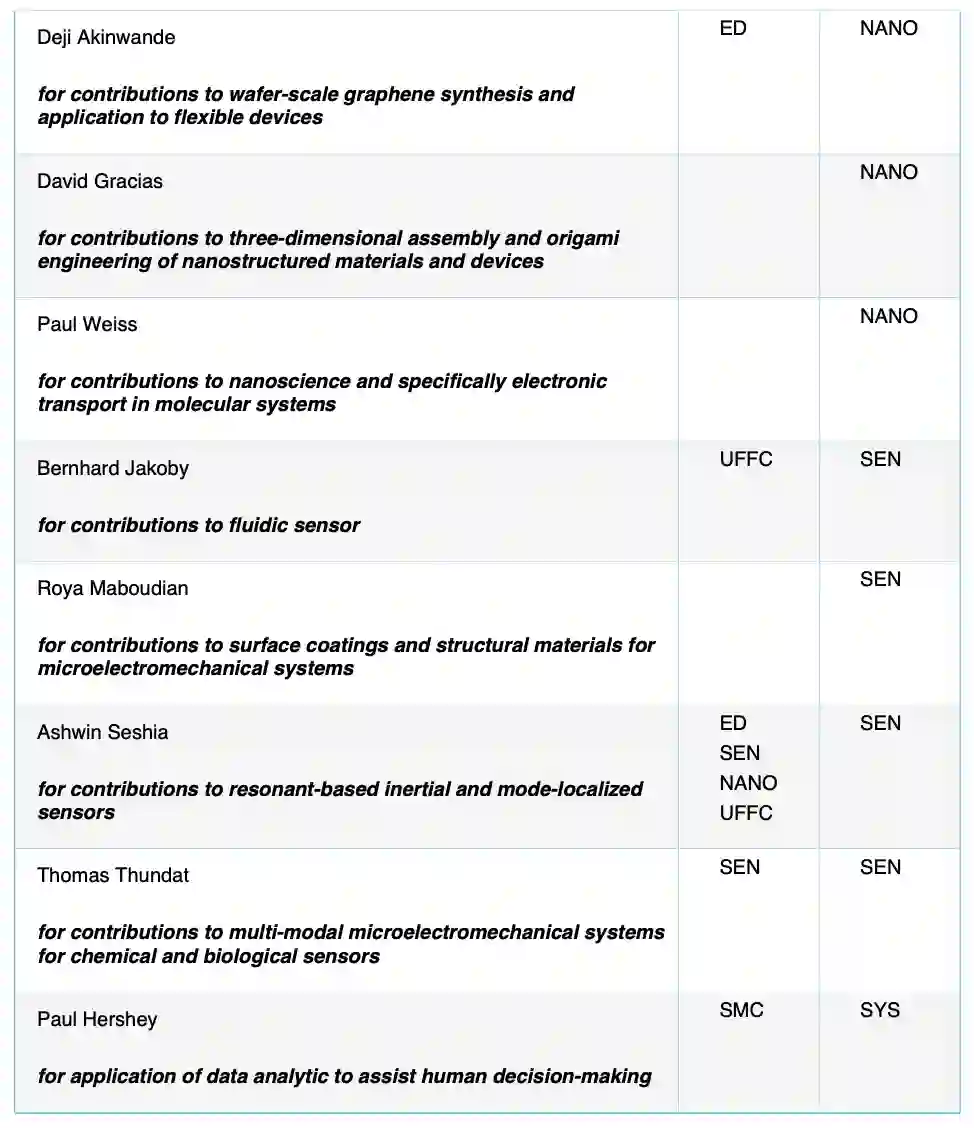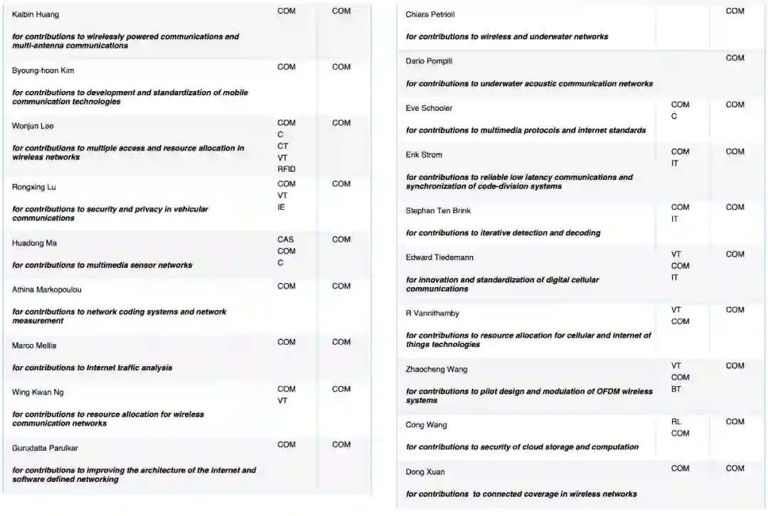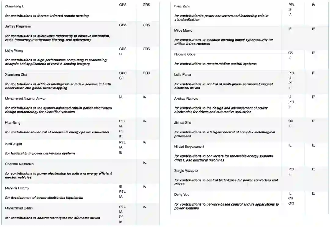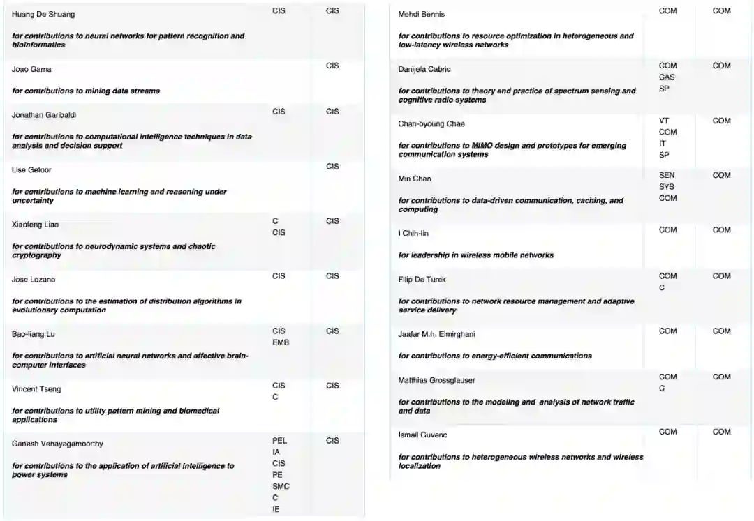 IEEE 的全称是 Institute of Electrical and Electronics Engineers(国际电气与电子工程师协会),是一个国际性电子技术与信息科学工程师的协会,如今在全球 160 多个国家和地区中拥有近 42 万会员。IEEE 建会于 1963 年 1 月 1 日,总部位于美国纽约市,是当今世界电子、电气、计算机、通信、自动化工程技术研究领域最著名、规模最大的非营利性跨国学术组织。在电气及电子工程、计算机及控制技术领域中,IEEE发表的文献占了全球将近 1/3。IEEE Fellow 即 IEEE 会士/院士,为协会最高等级会员,是该组织授予的最高荣誉,在学术科技界被认定为权威的荣誉和重要的职业成就,每年由同行专家在做出突出贡献的会员中评选出,当选人数不超过 IEEE 会员总人数的 0.1%。由于每年当选的 IEEE Fellow 数量较少,当选科学家基本都是在科学与工程技术领域内取得重要成就的杰出科学家。此次入选 IEEE Fellow 2021 名单的华人有:Jie Tang(唐杰)、Yi Huang(黄漪)、Guangming Shi(石光明)、Jingdong Chen(陈景东)、Hongke Zhang(张宏科)、Houqiang Li(李厚强)、Jianfei Cai(蔡剑飞)、Meng Wang(汪萌)、Jingyi Yu(虞晶怡)、Yu Zheng(郑宇)、Chunjiang Qian(钱春江)、Jiandong Li(李建东),Jun Li(李军),Xiuping Jia(贾秀萍),Huadong Ma(马华东),Huang De Shuang(黄德双)、Xiaofeng Liao(廖晓峰)、Bao-liang Lu(吕宝粮)、Jianhui Wang(王剑辉)、Junzhi Yu(喻俊志)、Dong Yue(岳东)、Shixia Liu(刘世霞)、Zhaocheng Wang(王昭诚)、Xiaoping Zhang(张晓平)、Wenchuan Wu(吴文传)、Zhongdong Wang(王忠东)、Jizhong Zhu(朱继忠)、Fushuan Wen(文福拴),Cong Wang(王聪)等。(学术头条注:由于 IEEE 历年新增 Fellow 名单只有英文名和入选原因,而没有详细的工作单位、职务和履历介绍,所以难免出现统计不全和错误,如有发现,欢迎补充指正。) 以下是学术头条(ID:SciTouTiao)统计的 75 位入选华人学者名单以及 IEEE 官方给出的入选理由,完整名单如下: 1、唐杰,清华大学计算机系教授、系副主任,获杰青、IEEE Fellow。研究人工智能、认知图谱、数据挖掘、社交网络和机器学习。发表论文300余篇,引用16000余次,获ACM SIGKDD Test-of-Time Award(十年最佳论文)。主持研发了研究者社会网络挖掘系统AMiner,吸引全球220个国家/地区2000多万用户。担任IEEE T. on Big Data、AI OPEN主编以及WWW’21、CIKM’16、WSDM’15的PC Chair。获北京市科技进步一等奖、人工智能学会一等奖、KDD杰出贡献奖。 入选理由:在从数据和社会网络挖掘中发现知识方向做出贡献(for contributions to knowledge discovery from data and social network mining)。2、黄漪(Yi Huang)入选理由:在硅整流二极管天线技术方向做出贡献(for contributions to rectenna technology)3、Hanyang Wang入选理由:在移动终端天线方向做出贡献(for contributions to mobile terminal antennas)4、Geyi Wen入选理由:在天线品质因数方向做出贡献(for contributions to antenna quality factor)5、Zhinong Ying入选理由:在移动终端天线技术方向做出贡献(for contributions to mobile terminal antenna technology)6、Ninghui Li入选理由:在数据隐私和安全方向做出贡献(for contributions to data privacy and security)7、刘世霞(Shixia Liu)入选理由:在可视化文本分析和可视化模型分析方向做出贡献(for contributions to visual text analysis and visual model analysis)8、Le Lu入选理由:在用于癌症检测和诊断的机器学习方向做出贡献(for contributions to machine learning for cancer detection and diagnosis)9、Xiaorui Wang入选理由:在数据中心服务器和嵌入式系统的电源管理方向做出贡献(for contributions to power management of data center servers and embedded systems)10、虞晶怡(Jingyi Yu)入选理由:在计算机摄影和计算机视觉的理论分析、算法和系统方向做出贡献(or contributions to theoretical analysis, algorithms and systems for computational photography and computer vision)11、Lintao Zhang入选理由:在具有高效布尔可满足性求解器的计算机辅助验证方向做出贡献(for contributions to computer-aided verification with efficient Boolean satisfiability solvers)12、郑宇(Yu Zheng)入选理由:在时空数据挖掘与城市计算方向做出贡献(for contributions to spatio-temporal data mining and urban computing)13、蔡剑飞(Jianfei Cai)入选理由:在多媒体传输与内容分析方向做出贡献(for contributions to multimedia transmission and content analysis)14、李厚强(Houqiang Li)入选理由:在视频编码和多媒体内容分析方向做出贡献(for contributions to video coding and multimedia content analysis)15、石光明(Guangming Shi)入选理由:在图像表示和图像重建方向做出贡献(for contributions to image representation and image reconstruction)16、汪萌(Meng Wang)入选理由:在多媒体内容分析与检索方向做出贡献(for contributions to multimedia content analysis and retrieval)17、Junsong Yuan入选理由:在人类行为理解和视频分析方向做出贡献(for contributions to human behavior understanding and video analytics)18、黄德双(Huang De Shuang)入选理由:在模式识别和生物信息学的神经网络方向做出贡献(for contributions to neural networks for pattern recognition and bioinformatics)19、廖晓峰(Xiaofeng Liao)入选理由:在神经动力学系统和混沌密码学方向做出贡献(for contributions to neurodynamic systems and chaotic cryptography)20、吕宝粮(Bao-liang Lu)入选理由:在人工神经网络和脑机接口方向做出贡献(for contributions to artificial neural networks and affective brain- computer interfaces)21、Min Chen入选理由:在数据驱动的通信、缓存和计算方向做出贡献(for contributions to data-driven communication, caching, and computin