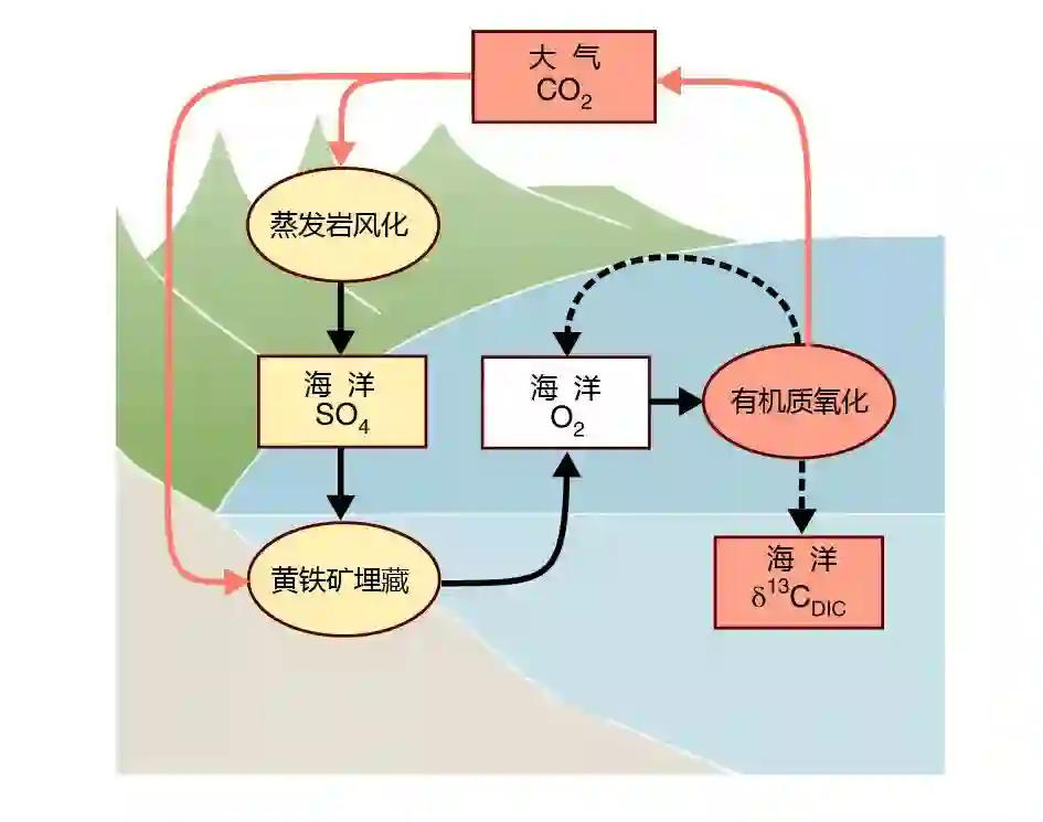 蒸发岩风化与海洋有机碳库氧化的正反馈模型图