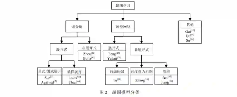 随着图结构化数据挖掘的兴起, 超图作为一种特殊的图结构化数据, 在社交网络分析、图像处理、生物反应解析等领域受到广泛关注. 研究者通过解析超图中的拓扑结构与节点属性等信息, 能够有效解决实际应用场景中所遇到的如兴趣推荐、社群划分等问题. 根据超图学习算法的设计特点, 将其划分为谱分析方法和神经网络方法, 根据方法对超图处理的不同手段, 可进一步划分为展开式方法和非展开式方法. 若将展开式方法用于不可分解超图, 则很有可能会造成信息损失. 然而, 现有的超图相关综述文章鲜有就超图学习方法适用于哪类超图这一问题做出相关归纳. 因此, 分别从超图上的谱分析方法和神经网络方法两方面出发, 对展开式方法和非展开式方法展开讨论, 并结合其算法特性和应用场景作进一步细分; 然后, 分析比较各类算法的设计思路, 结合实验结果总结各类算法的优缺点; 最后, 对超图学习未来可能的研究方向进行了展望.