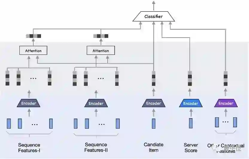 在阿里的应用场景下,研究团队基于这样的协同推理机制,结合表征矩阵压缩、云端排序打分作为特征、实时序列等技术和信息,构建了端重排模型。