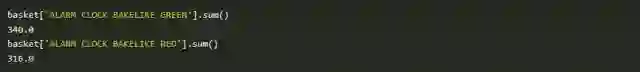 您可能想要看看有多大的机会可以使用一种产品的受欢迎程度来推动另一种产品的销售。例如,我们可以看到,我们销售340个绿色闹钟,但只有316个红色闹钟,所以也许我们可以通过科学的方法来推动更多的红色闹钟销售。
