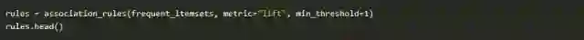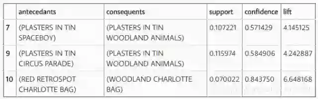 我们可以使用标准的pandas code来过滤数据帧。在这种情况下,寻找一个lift(6)和高信度(.8):