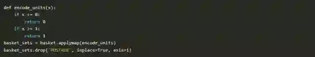 最后一个注意事项,与数据有关。此分析要求将交易的所有数据包含在1行中,并且编码方式应为one-hot编码(了解one-Hot编码)。了解MLxtend 的文档对了解如何运用是非常有用: