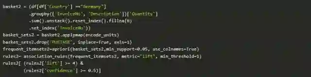 接下来我将演示一个使用此库来分析相对较大的在线零售数据集的示例,并尝试查找有趣的购买组合。在本文结尾处,我希望你能掌握将其应用于你自己的数据集的基本方法。
