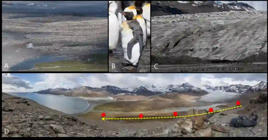 在过去 50 年里,南极南乔治亚岛的冰川一直在退缩,而这里拥有世界上最大的帝企鹅种群,大约有 15 万对企鹅繁殖。而随着冰川的消退,大量的企鹅向内陆迁移,这也意味这会产生更多的企鹅粪便,并在土壤中沉淀出更多的一氧化二氮和二氧化碳,这两个都是温室气体中最主要的成分。
