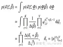 o 第一项因子是给定主题采样词的过程