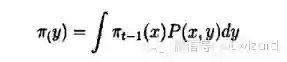 最后一个等式利用了转移矩阵每行元素的和为1离散状态的马氏链的基本思想可以推广到连续情形,设其转移核为P(x,y)