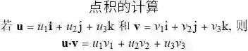空间中两个向量的点积(或内积, 数量积)以对平面向量同样的方式定义. 当把两个非零向量 u 和 v 的起点放在一起, 就形成一个大小 0<=θ<=π 的角.