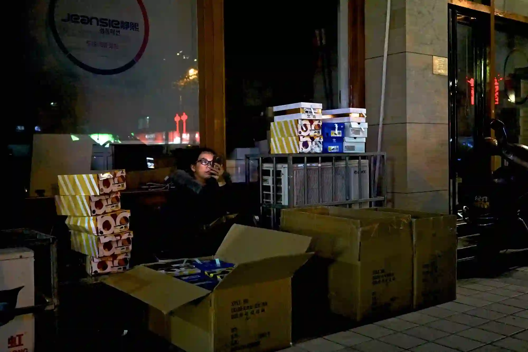晚上的中国安福市场是高仿鞋的狂热交易市场