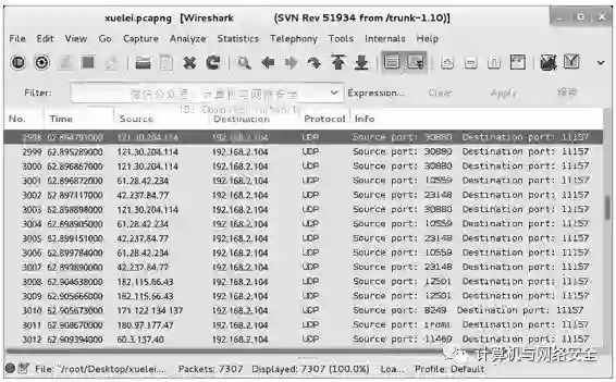 (5)当客户端使用迅雷正常下载视频时,返回到Wireshark捕获包界面,将看到有大量UDP协议的包,如图14所示。
