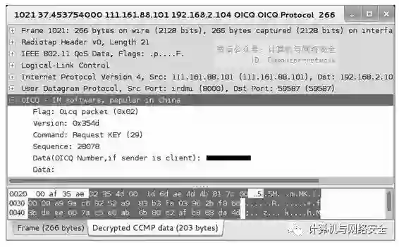 通常人们蹭网,目的是想要看视频或者上QQ聊天。如果要看视频的话,将会从某个服务器上下载内容。当客户端有大量的下载内容时,在Wireshark中将会看到有大量的UDP协议包;当有人使用QQ聊天时,在Wireshark捕获的包中,可以看到有OICQ协议的包,并且在其包中可以看到他们的QQ号码。下面通过使用Wireshark工具捕获包,并分析查看是否有人蹭网。